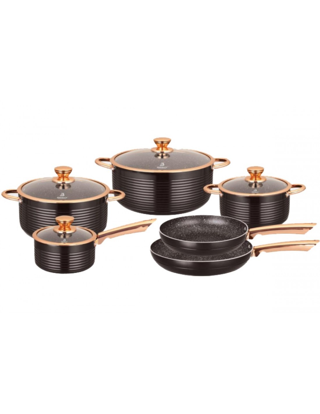 Batería de cocina 10pcs Rossenberg. Juego completo compuesto por 3 ollas de diferentes tamaños, una cacerola y dos sartenes.
