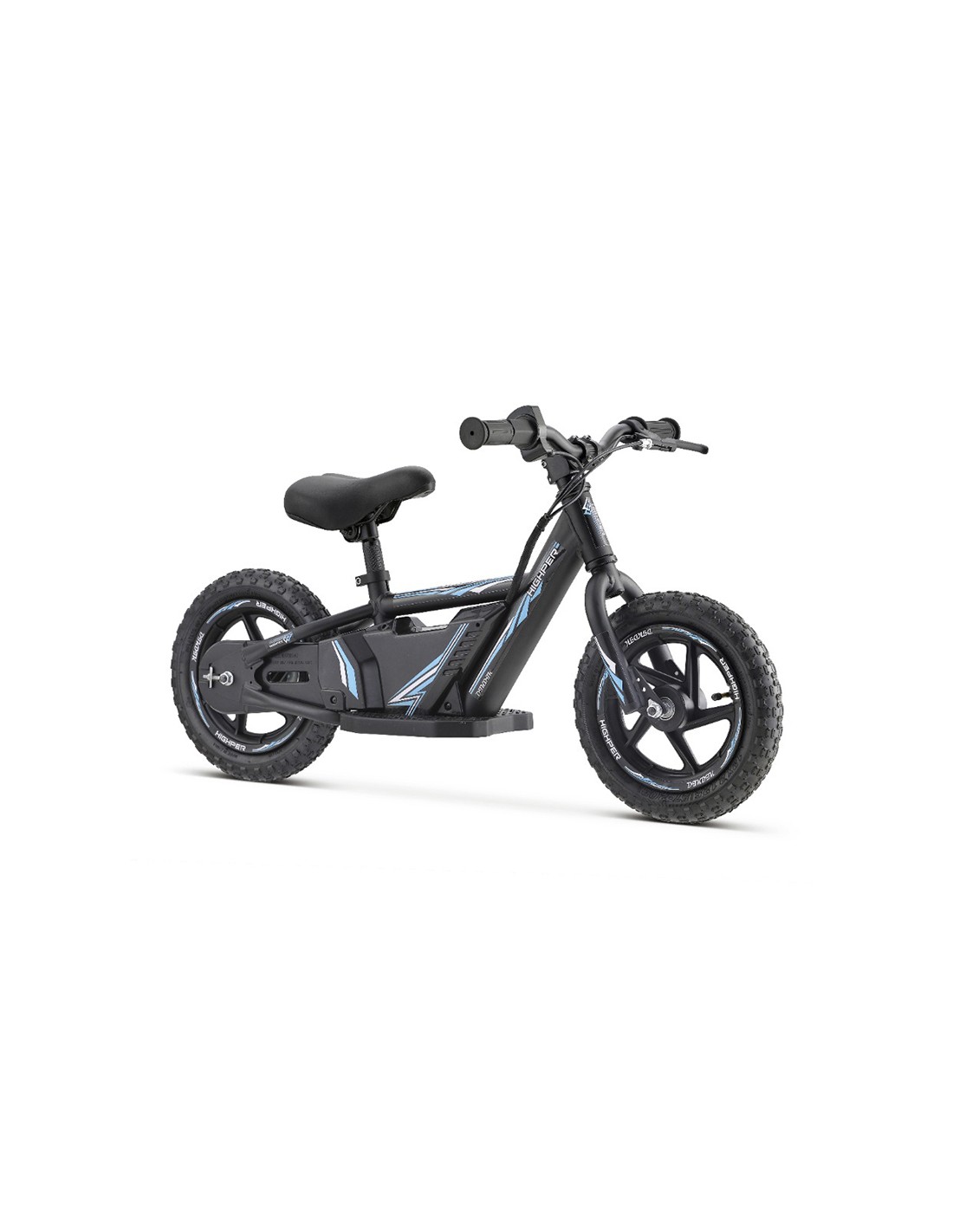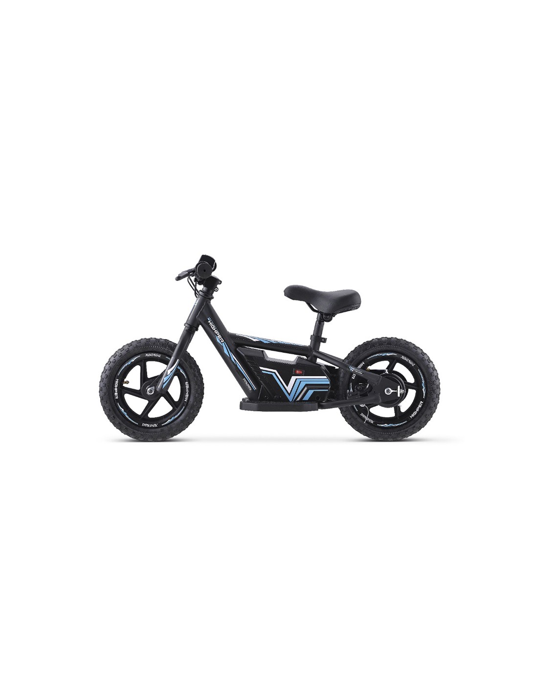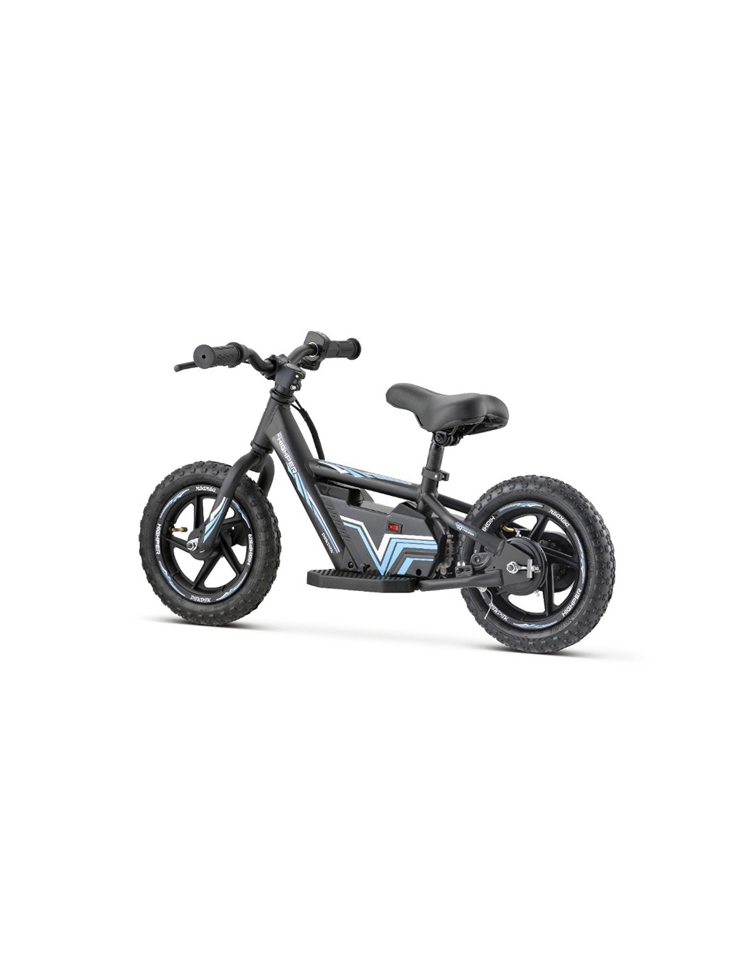 Mini bicicleta para niños con motor eléctrico y sistema de aceleración por puño. Esta mini bike cuenta con sistema de aceleración progresivo. En primer lugar, el niño debe dar un par de pasos con la bicicleta mientras le da al puño para que comience a acelerar. Como máximo, alcanza una velocidad de unos 18km/h aproximadamente.