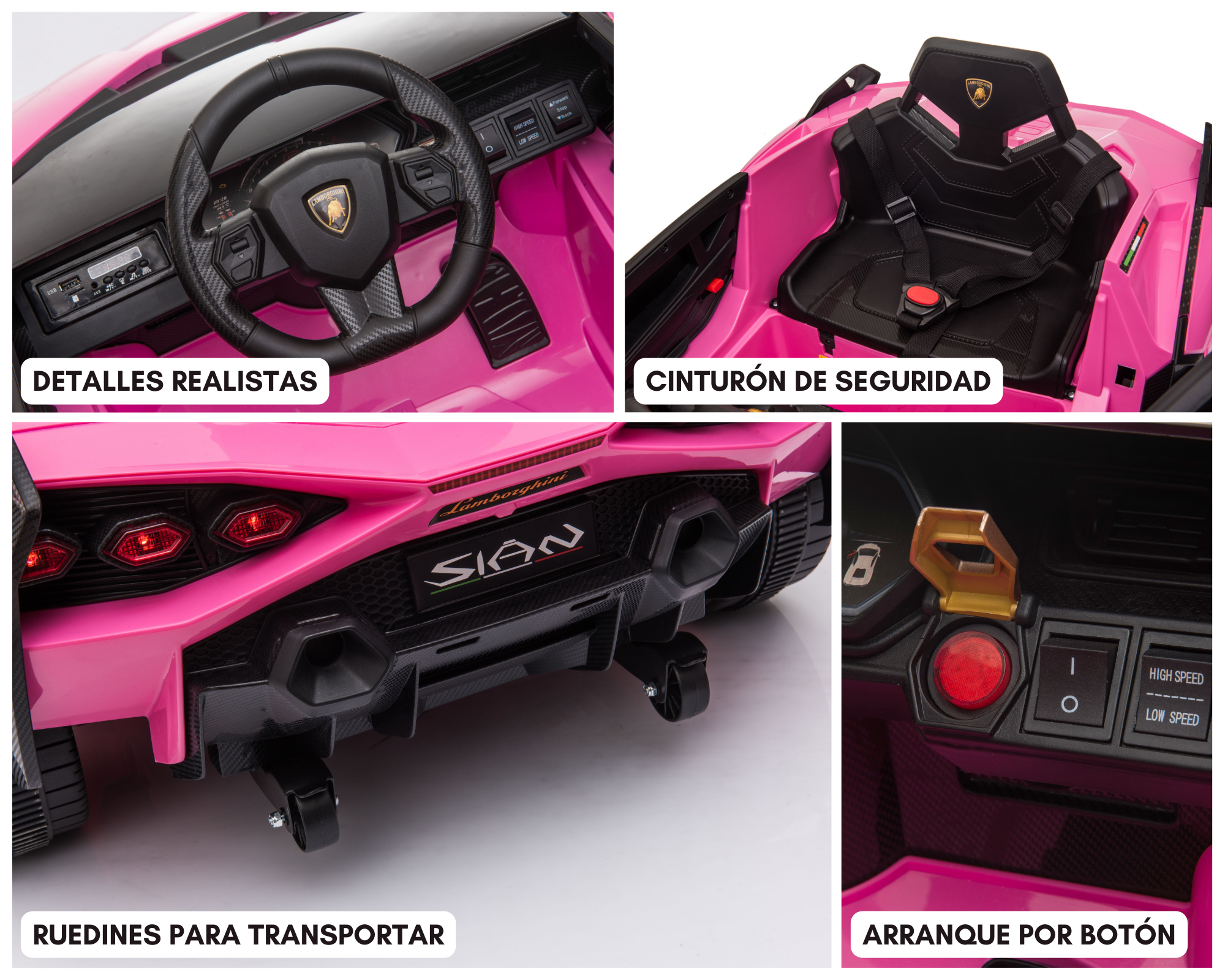 Coche eléctrico infantil LAMBORGHINI SIAN. Un cochecito deportivo que cuida al máximo todos los detalles del juguete para un mayor realismo.