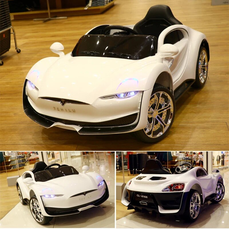 Nuevo modelo de coche eléctrico infantil tipo TESLA. Disponible en color blanco, azul y rojo.
