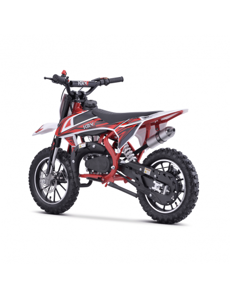 Nueva minimoto cross KRX-23, la gran revolución en el mundo de las minicross infantiles. Una moto diseñada con mucho mimo para los pequeños aficionados al motor, con un chasis mucho más reforzado que otros modelos de la misma gama. Este modelo asegura una buena frenada gracias a sus frenos de discos, además de limitador de velocidad para su mayor seguridad. Dispone de amortiguación delantera y trasera, lo cual hace esta mini moto cross ideal para el campo, muy ligera y fácil de manejar.