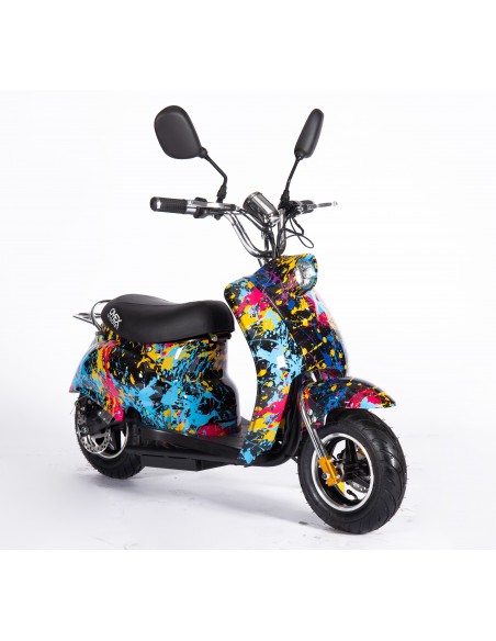 Mini vespa infantil de batería de 250W, disponible en color rosa, verde menta, cómic y rojo/negro.
