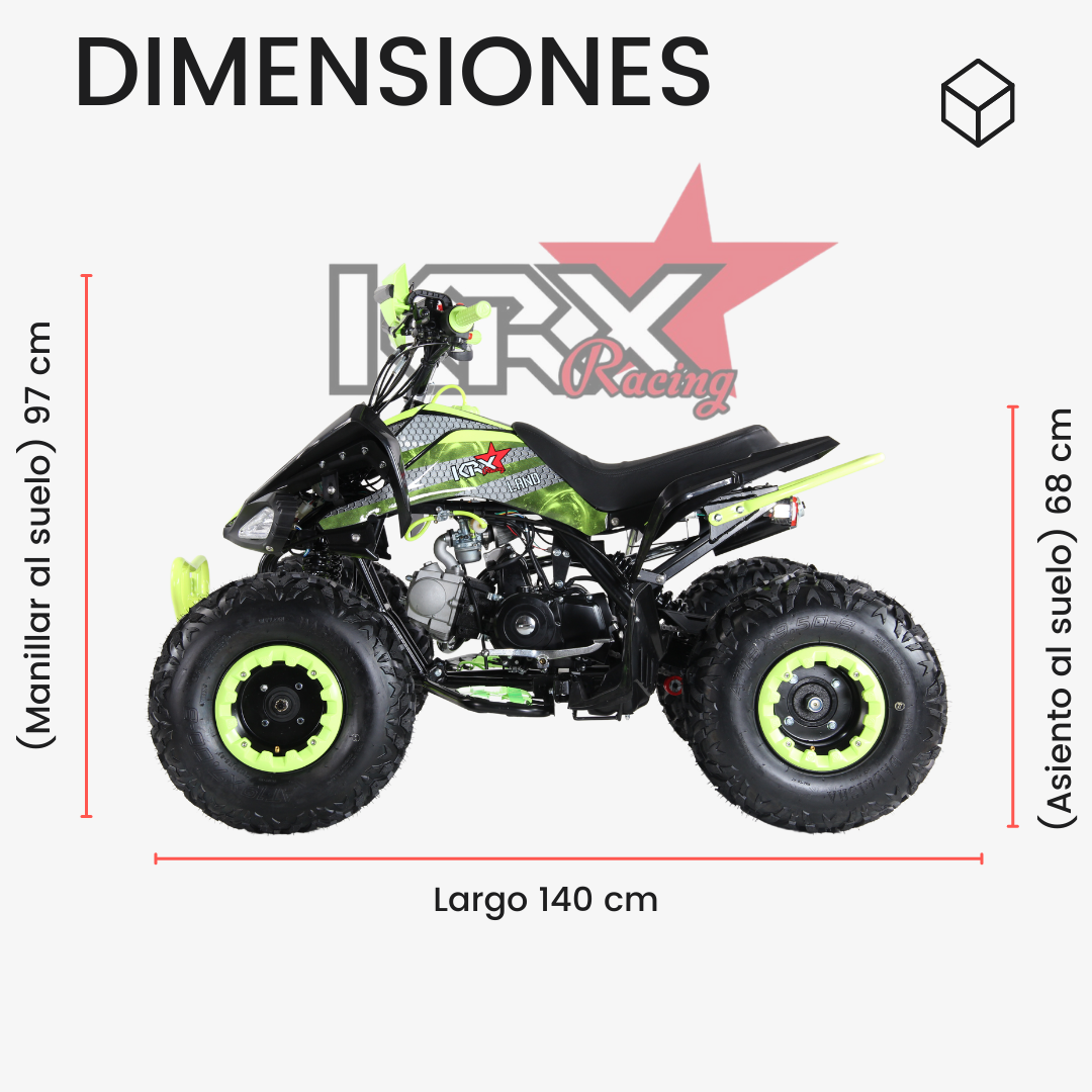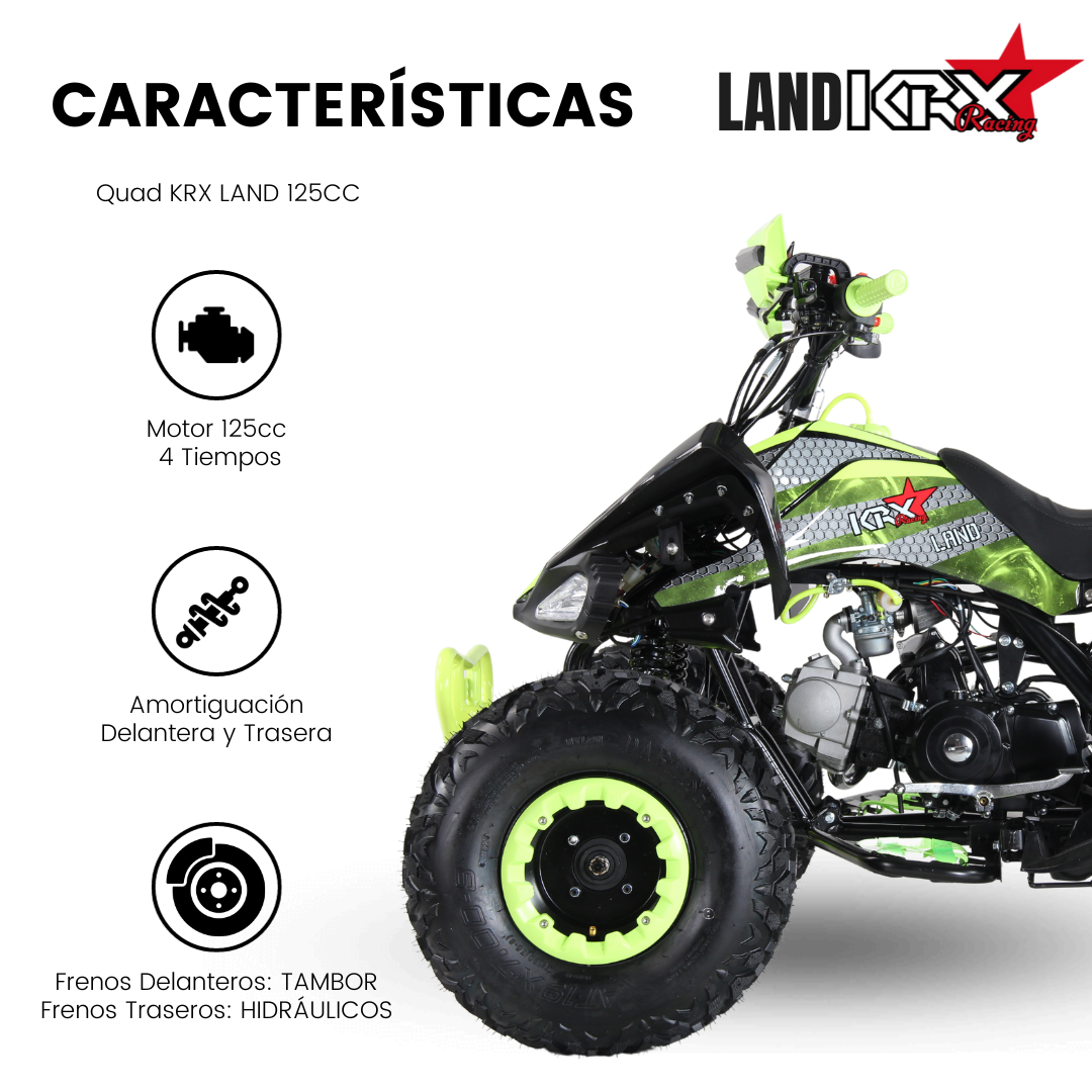 ATV LAND Quad 125cc 2023 equipado con motor de 4 tiempos refrigerado por aire de la marca KRX. Potente quad de la nueva gama de KRX 2023 con arranque eléctrico y marchas automáticas.